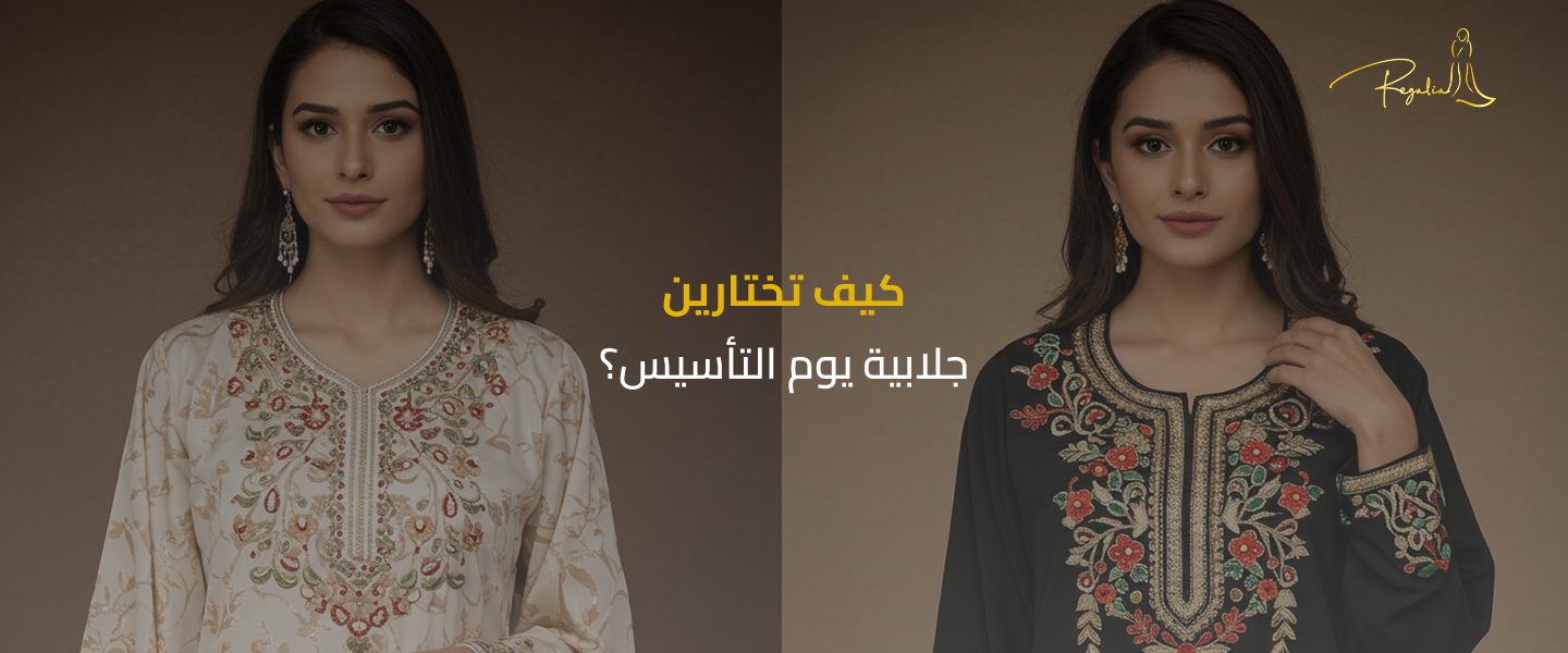 أما جلابيات يوم التأسيس فقد جاءت لتضيف لمسات جديدة تجمع بين الأصالة والتجديد فهي تحمل نفس الروح التراثية لكنها تُصمم بقصات أكثر حداثة وتطريزات فاخرة تعكس قيمة هذه المناسبة الوطنية العظيمة فالألوان فيها أكثر تنوعاً وغنى لتمنح المرأة السعودية مظهر راقي يتماشى مع أجواء الاحتفال الرسمي بطريقة عصرية.